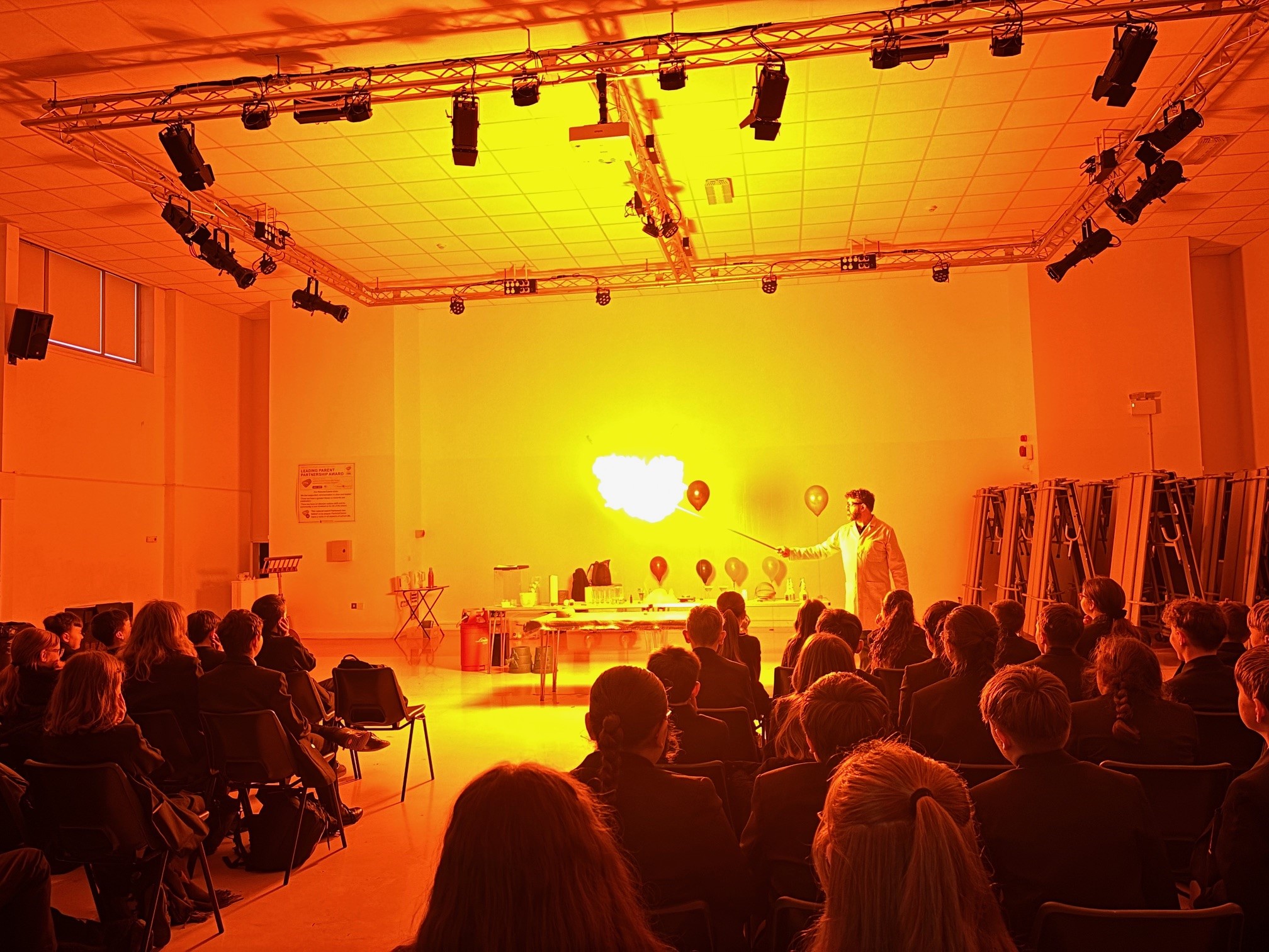 The week launched on Friday with an exciting Science Tricks Show presented by Explorer Dome. This lively, presenter‑led experience was designed to provoke observation and prediction through a series of interactive demonstrations. Using everyday physics and kitchen chemistry—complete with bursts of fire, bright flashes, and swirling freezing fog—the show sparked real excitement. Students were particularly enthusiastic about the hands‑on elements, eagerly taking part and sharing their thoughts as each surprising effect unfolded.